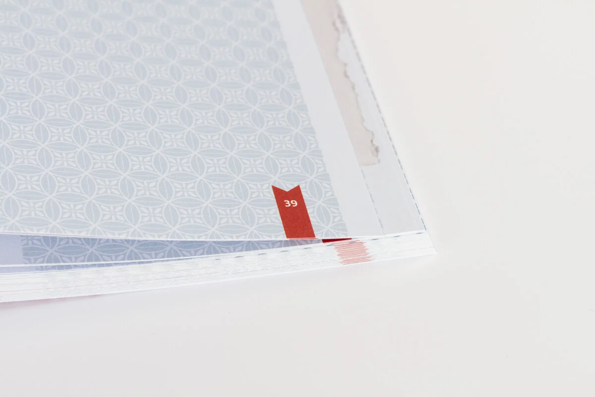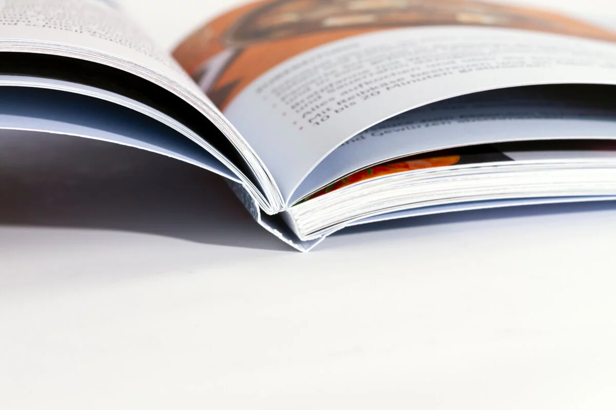 Buch mit Softcoverdeckel und Fadenheftung Gutes Aufschlageverhalten dank Freirücken