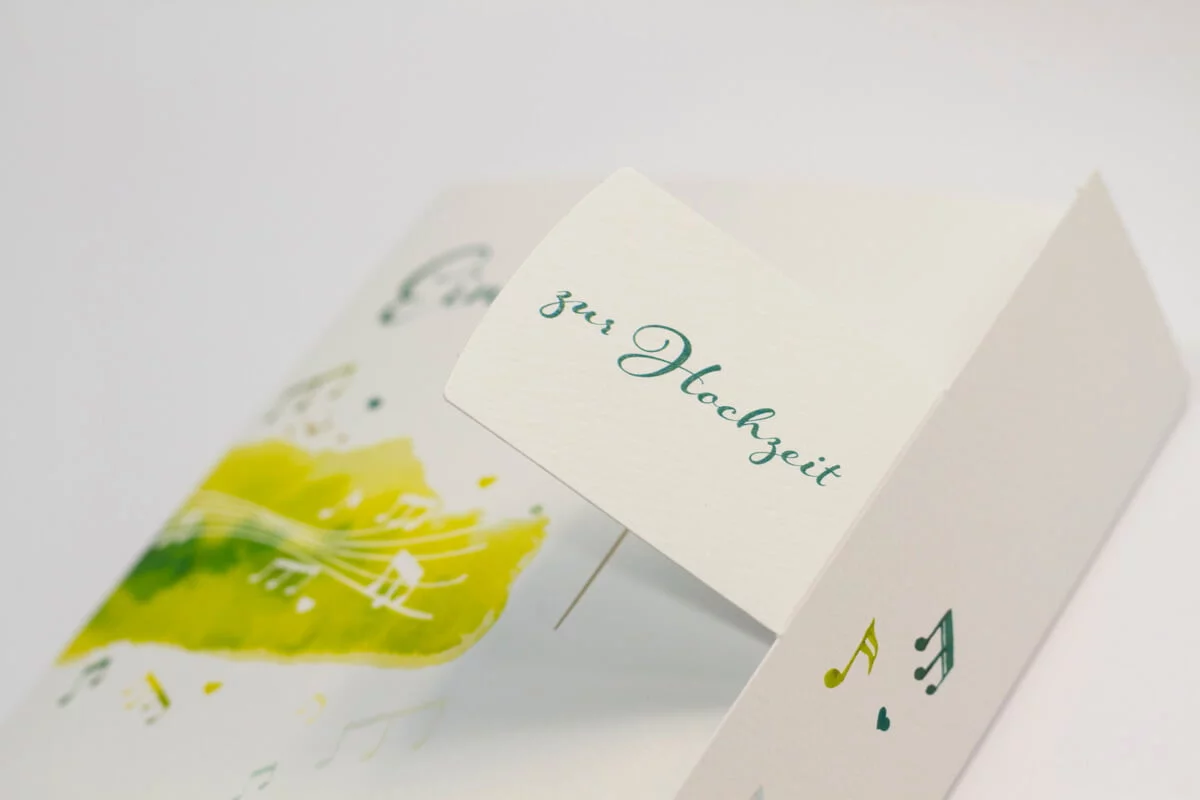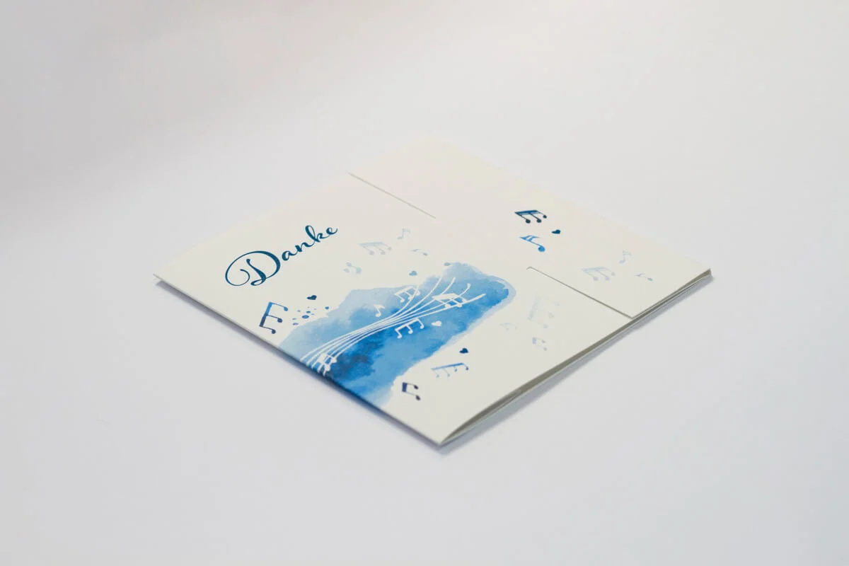 Einladung und Dankeskarte kommen in Form zwei zueinander passenden Pop-Up-Hüllen daher.